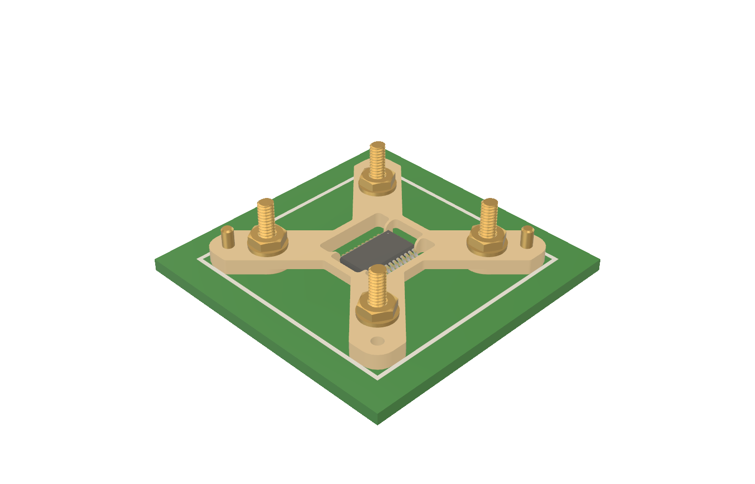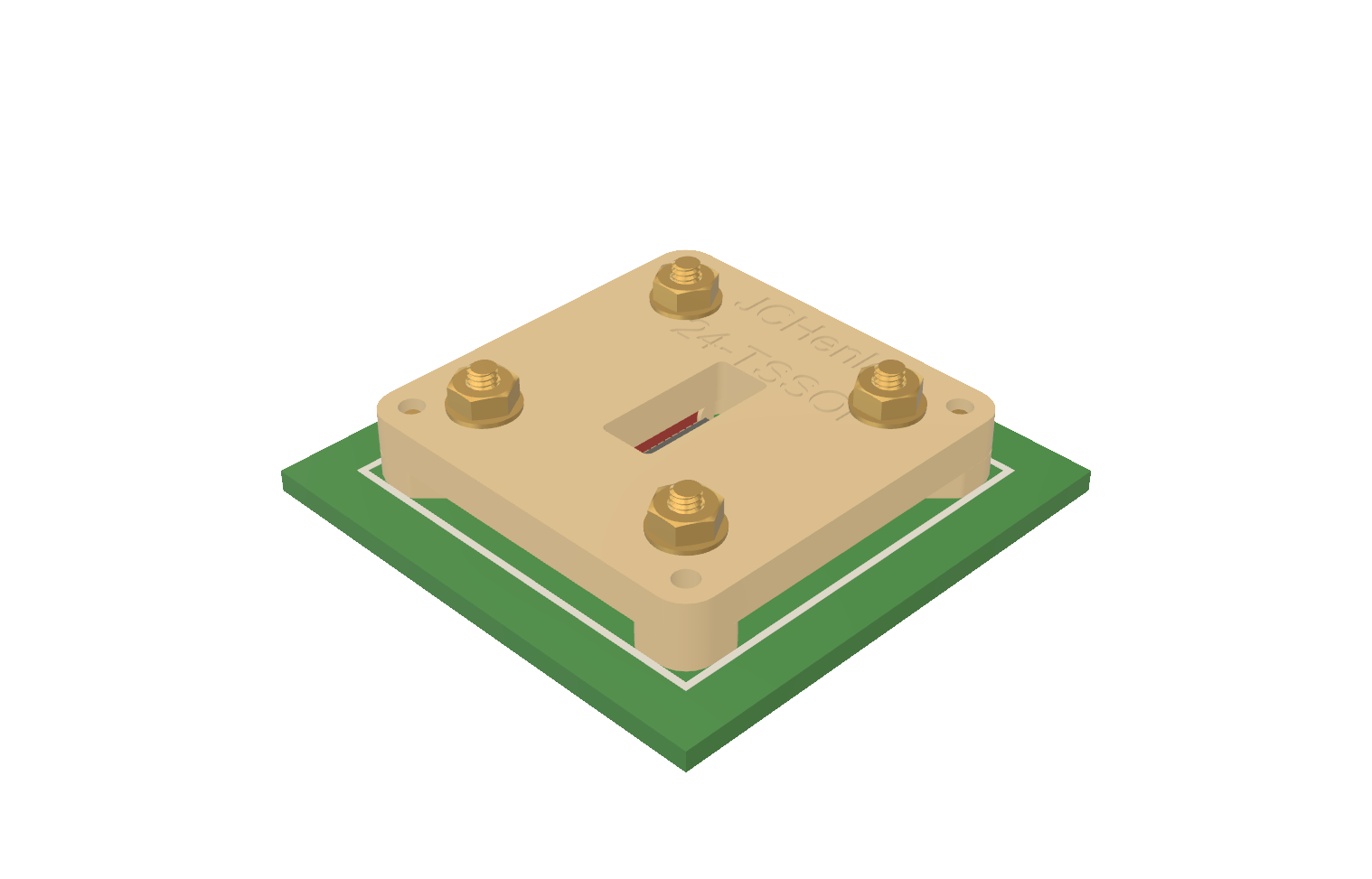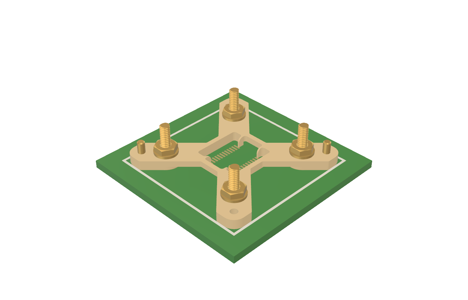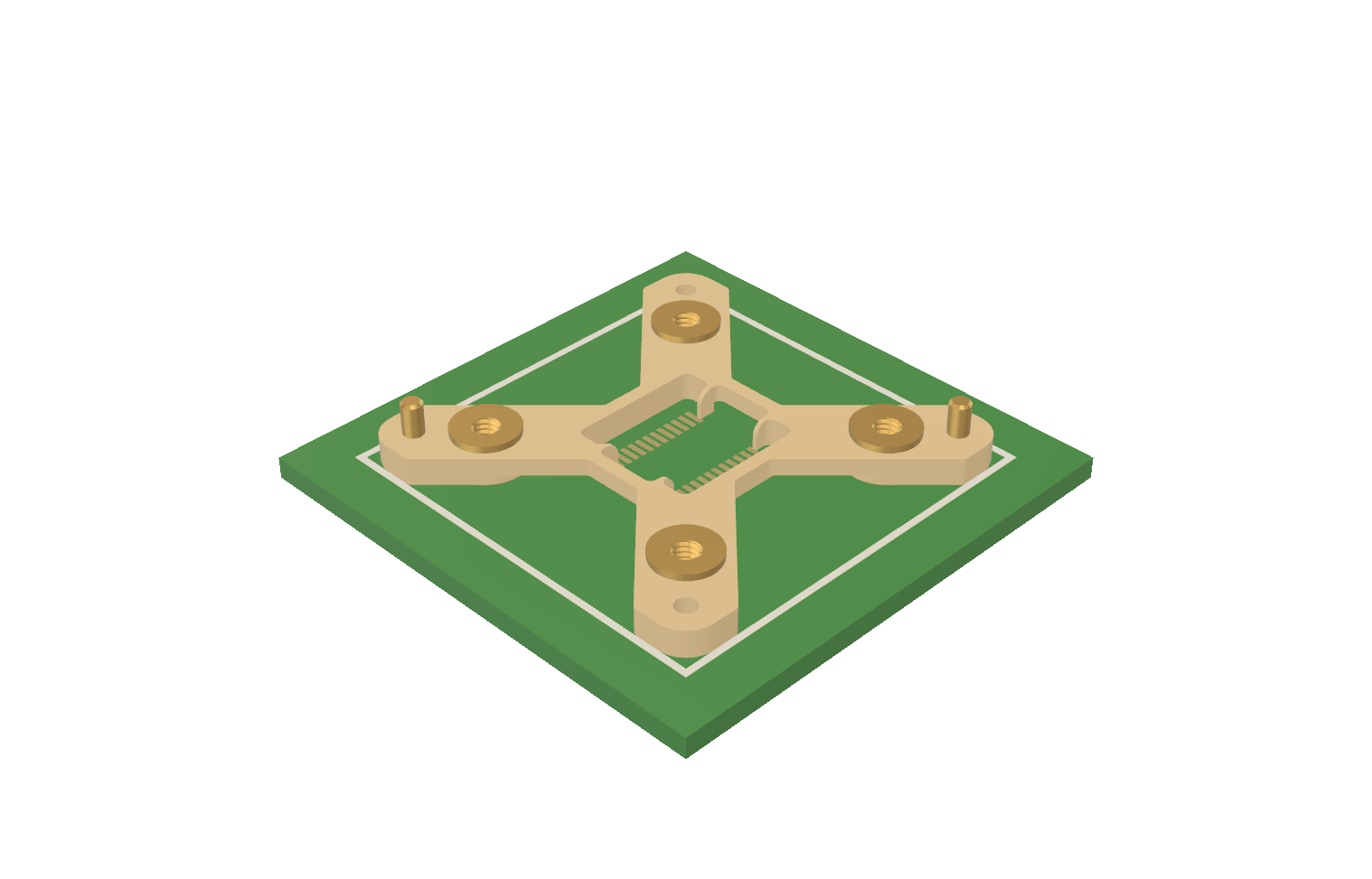 The Device Under Test is pressed down onto the device’s standard PCB footprint